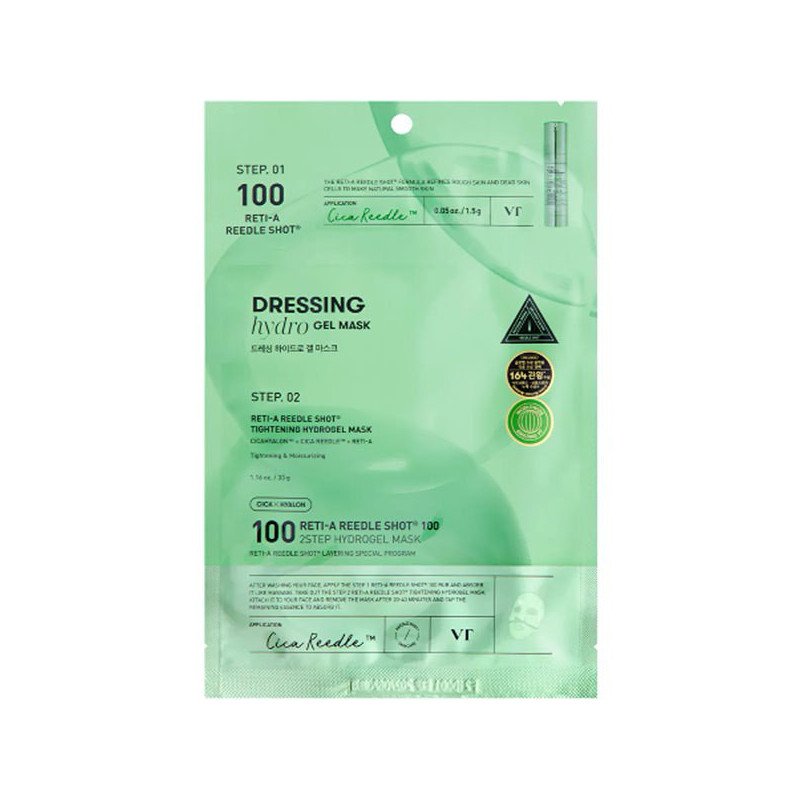 VT COSMETICS RETI-A REEDLE SHOT® 100 2STEP HYDROGEL MASK допомагає покращити стан шкіри та забезпечує зволоження. Ідеально підходить для щоденного використання, підтримуючи здоровий та сяючий вигляд.